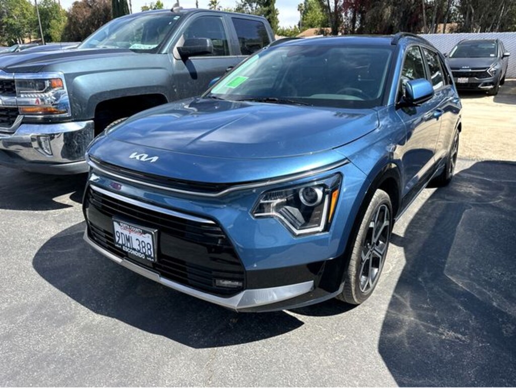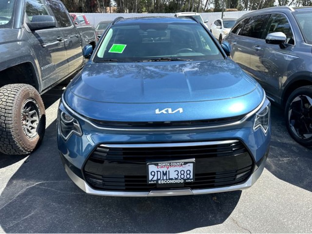 760-678-1870 Call for assistance. Certified. Clean CARFAX. Mineral Blue Kia Niro 1.6L I4 DGI Hybrid DOHC 16V LEV3-SULEV30, 6 Speakers, Apple CarPlay & Android Auto, Cloth & Vegan Leather-Trimmed Seats, Exterior Parking Camera Rear, Front dual zone A/C, Heated front seats, Navigation System, Power driver seat, Power moonroof, Radio: AM/FM/HD/SiriusXM, Smart Key w/ Push Button and Remote Start, Wheels: 18" Alloy w/Machined Finish. Kia Certified Pre-Owned Details: