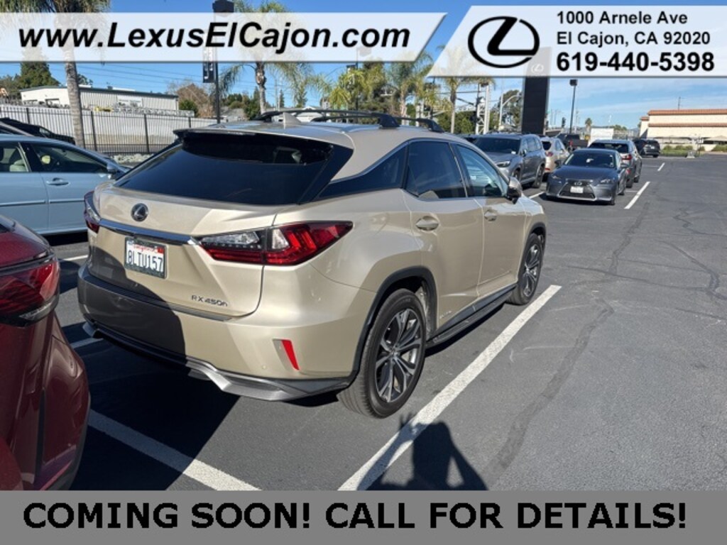 Recent Arrival! CARFAX One-Owner. Cashmere 2019 Lexus RX 450h AWD eCVT 3.5L V6 DOHC VVT-i 24V Light Package, Power Package, Power Mirror Package, Climate Package, Alloy Wheels, Aluminum Wheels, Audio Package, Courtesy Lights Illum Package, Heat Package, Package, Safety Package, 3.5L V6 DOHC VVT-i 24V, AWD, Parchment, ABS brakes, Active Cruise Control, Alloy wheels, Blind Spot Monitor & Rear Cross Traffic Alert, Cold Area Package, Driver Seat Memory, Electronic Stability Control, Front dual zone A/C, Headlamp Auto-Leveling, Headlamp Washers, Heated door mirrors, Heated Front & Rear Seats, Illuminated Door Sills, Illuminated entry, Leather Seat Trim, Lexus Enform App Suite 2.0, Lexus Enform Destination Assist, Lexus Enform Wi-Fi, Low tire pressure warning, Navigation Package, Navigation System, Power Folding Electrochromic Mirror w/Memory, Power Liftgate, Power Tilt & Slide Moonroof, Premium Package, Radio: AM/FM/In-Dash CD/DVD Player & Navigation, Rear Armrest Storage Compartment, Remote keyless entry, Roof Rail, Steering Wheel Memory, Traction control, Wheels: 20" x 7.5" Super Chrome Machine Finished, Windshield Wiper De-Icer, Wood & Leather Heated Steering Wheel, Wood Door Trim.